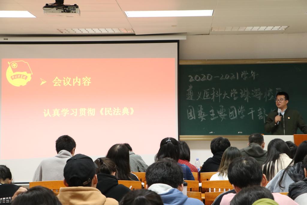 会议伊始,杨老师通过分享多个案例带领大家深入学习贯彻《中华人民共和国民法典》,并要求各部系团总支扎实抓好《中华人民共和国民法典》的学习、宣传等工作。随后,杨老师讲解《习近平与大学生朋友们》这本书的内容,要求各团学干部要认真学习,认真做好自己的学业规划,珍惜大学时光,不负青春韶华。最后,各团学干部总结汇报近期完成和下一步计划开展的工作。
