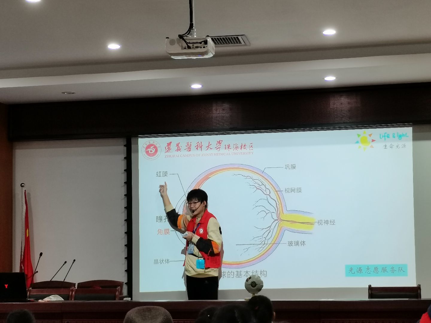 为探索视觉奥秘,引导青少年健康成长,2020年12月20日,由金湾区志愿者联合会主办,在共青团遵义医科大学珠海校区委员会指导下,遵义医科大学珠海校区青年志愿者协会光源志愿服务队赴金湾区金海岸社区开展了“汇聚志愿力量•助力乡村振兴”的讲课活动。
