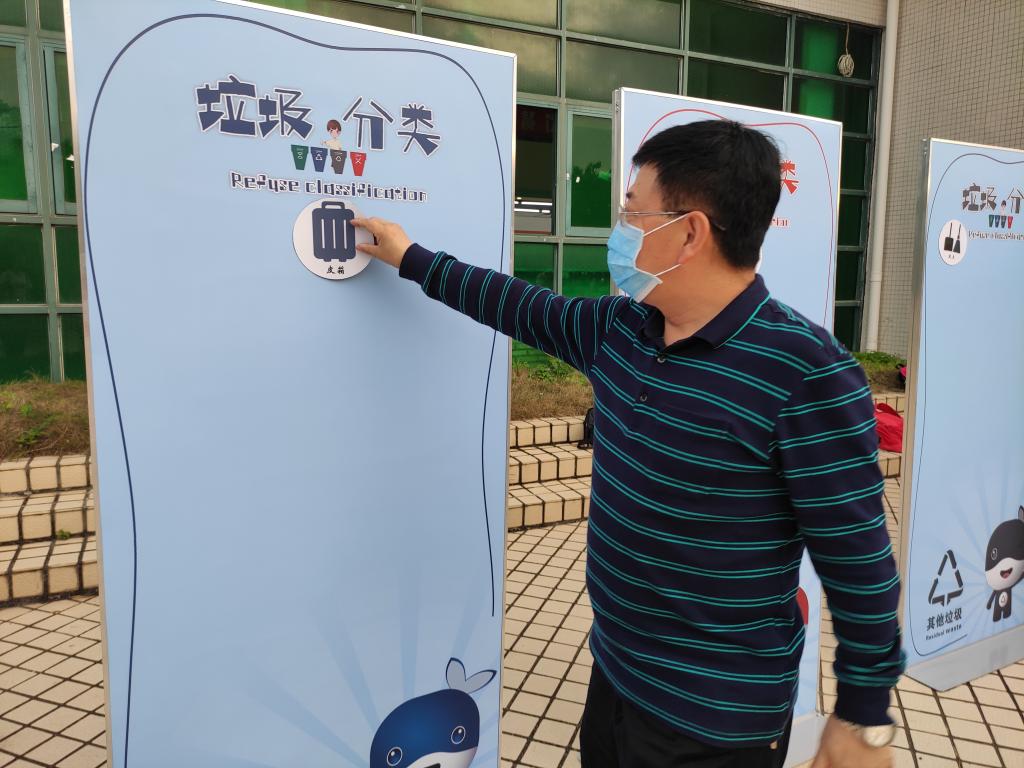 活动中,校区青年志愿者们首先通过在餐厅门口设立摊位的形式,为来参与的同学们讲解垃圾分类小妙招。本次游园活动还设置“垃圾分类精准投”等趣味小游戏,通过轻松且有趣的互动形式引导参与者将随机“垃圾牌”张贴到正确的垃圾分类版块,让师生学习垃圾分类、宣传垃圾分类。