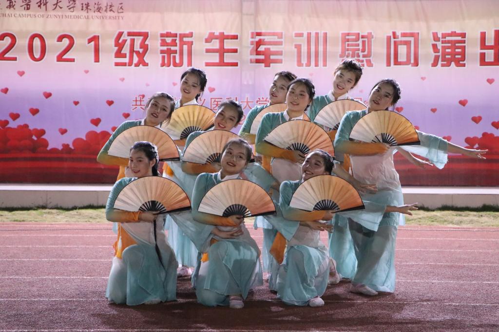 活动开始,器乐队演奏青春和浪漫的《love story》,轻快的节奏,消散了训练的疲惫感,让现场气氛热烈了起来。随后,大学生艺术团民族舞蹈队带来的舞蹈《醉春风》、民乐队《起风了》和侗族大歌队《布谷催春》的悠扬歌声,向新生展示了中华民族不同的文化特色。啦啦操队、街舞队、礼仪模特队带来的精彩演出,张扬着青春的魅力,旋律动感,让同学们眼前一亮。2021级的新同学们也踊跃上台,为大家带来歌舞、演奏表演,积极展现自己的才艺。现场气氛活跃,掌声不断。最后,2021级助产1班带来合唱《歌唱祖国》,大学生艺术团合唱团演绎《托起生命的航船》,唱出了遵医人的初心和使命,谱写生命的华章。