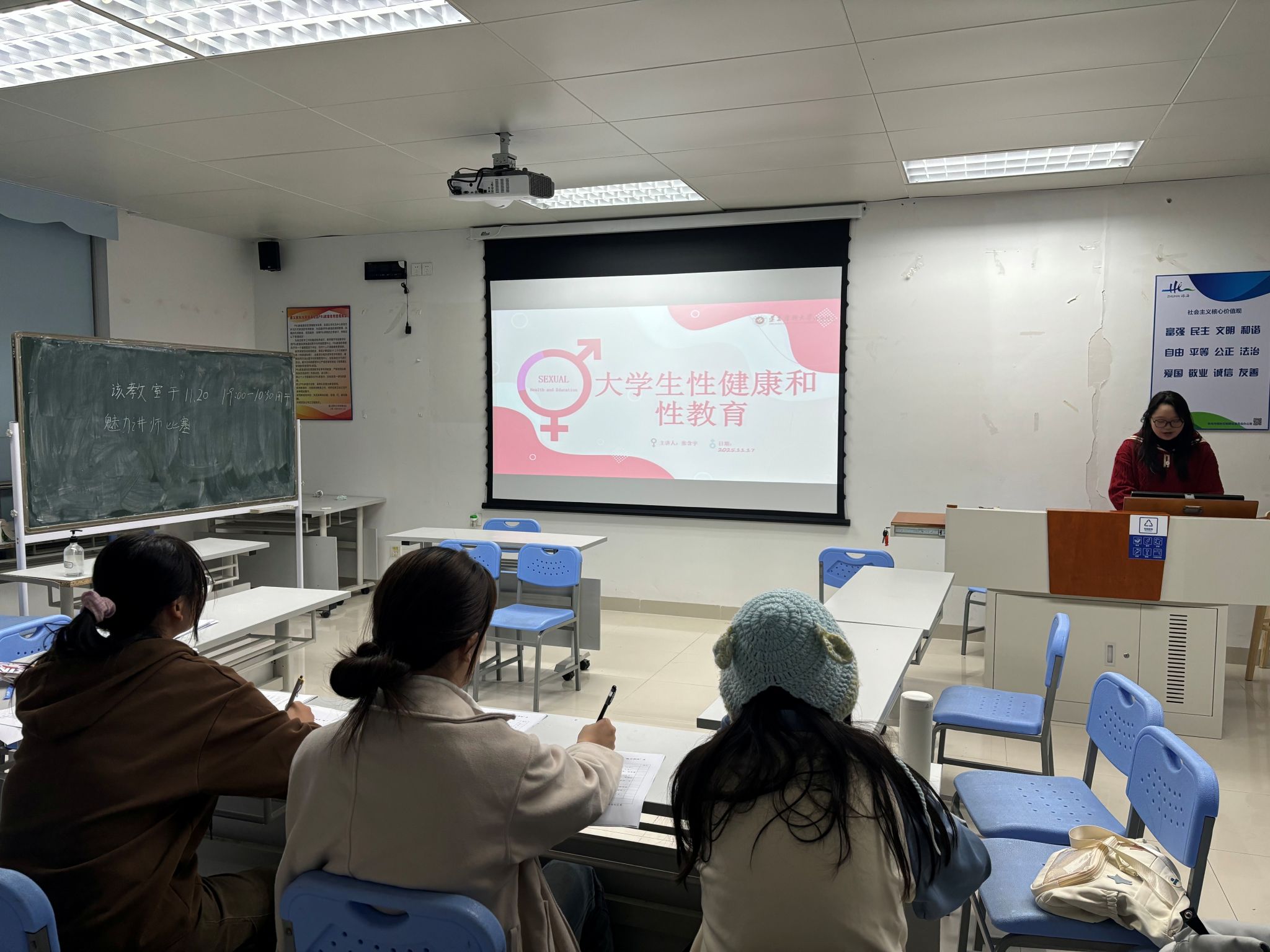 为进一步加强青春健康教育,引导学生树立科学健康的性观念,提升自我保护能力,由广东省计划生育协会、珠海市金湾区卫生健康局与校区团委共同主办、校区青春健康高校行项目组承办的2025年“魅力讲师”青春健康主题初赛,于11月18日、20日晚在综合楼多个教室顺利举行。本次比赛吸引了50余名同学自主报名参与,由校区青春健康高校行项目组各组长担任评委。比赛中,选手们围绕青春健康主题,通过生动讲解、情景互动、案例剖析等多种形式展开竞讲。有的借助风趣图文传递科学性知识,打破“谈性色变”的固有观念;有的以沉浸式问答普及艾滋病预防知识,强化防艾意识;还有的结合社会热点事件,强调性教育的重要性,呼吁抵制性侵害、预防意外怀孕。选手们表现自信从容,内容深入浅出,在传递知识的同时也展现了良好的宣讲风采,赢得现场观众的积极反响。本次活动以赛促学、以讲促知,不仅为同学们搭建了展示自我、锻炼表达的平台,更以生动有趣的形式普及了青春健康知识,有效提升了学生的性健康意识与自我防护能力。【图片、文字:校区团委媒体部;一审:周玥彤;二审:朱博昌;终审:武荔涵】